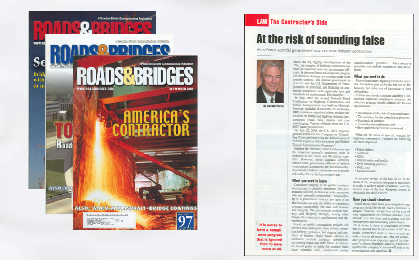 Then, for 25 years I wrote a column for Roads and Bridges magazine titled “Law: The Contractor’s Side.”