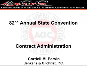 I made presentations around the country to contractors on how to set up a contract administration system to anticipate problems before they occur and comply with the contract requirements when they do occur. To get the idea take a look at my Contract Administration Presentation for the Iowa AGC.